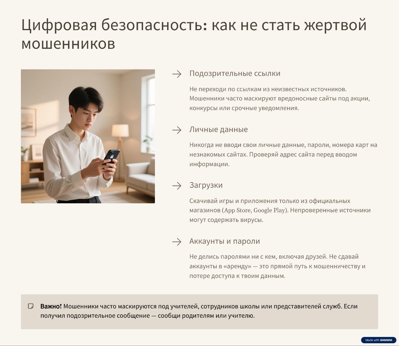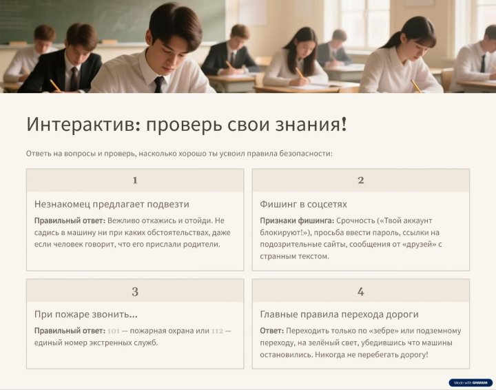 Участники кружка «Юный спасатель» подготовили информативную презентацию с правилами безопасности для учащихся 5–11 классов.
