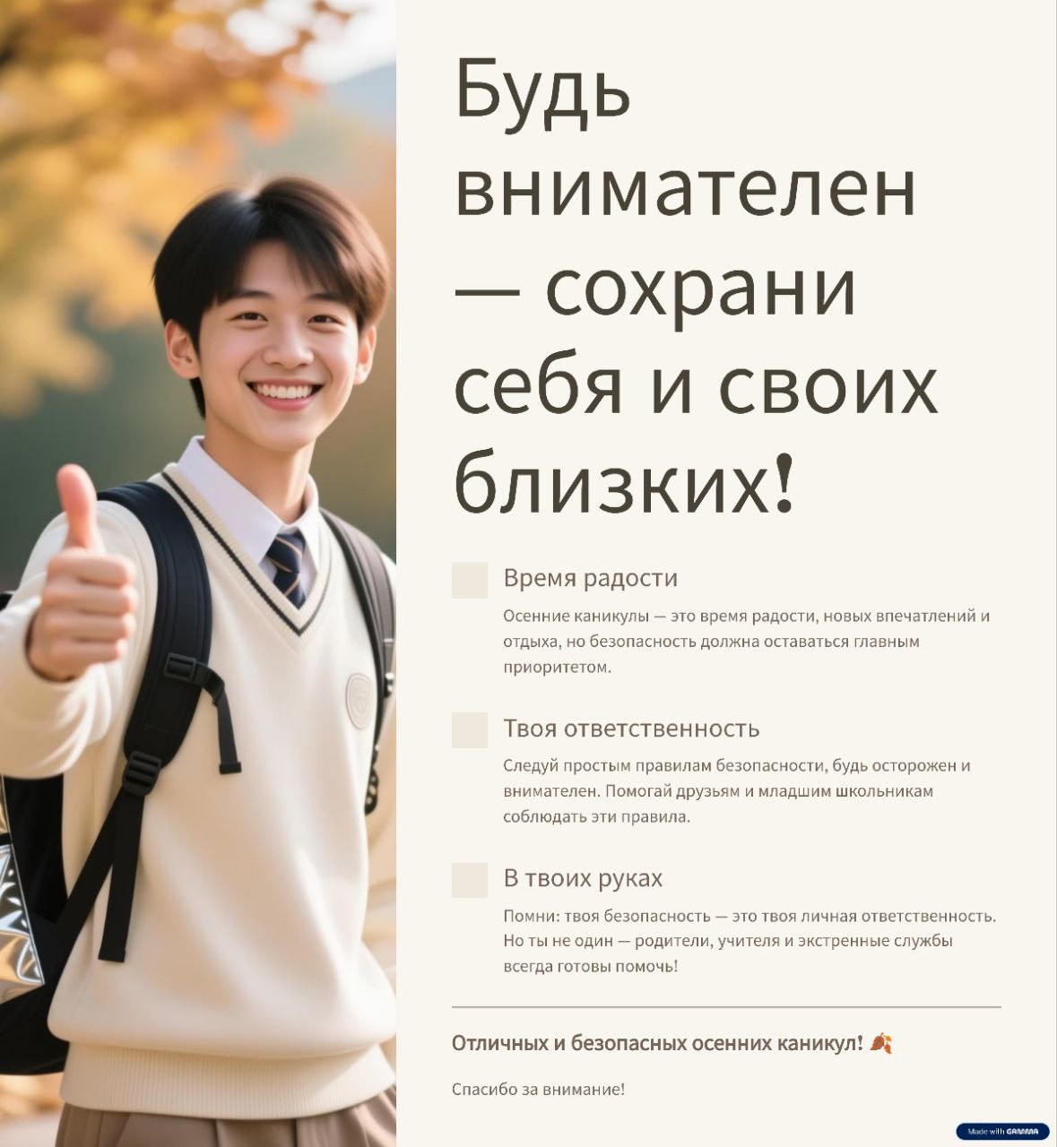 Осенние каникулы — время отдыха и ярких впечатлений! Но не стоит забывать о безопасности.